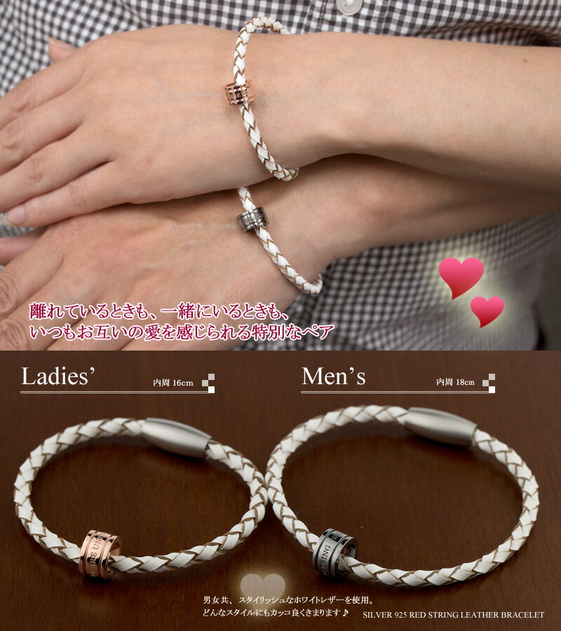 男性用、女性用ともにホワイトのレザーでオシャレ度満点!ブレスレットは4つ編み本革レザー。